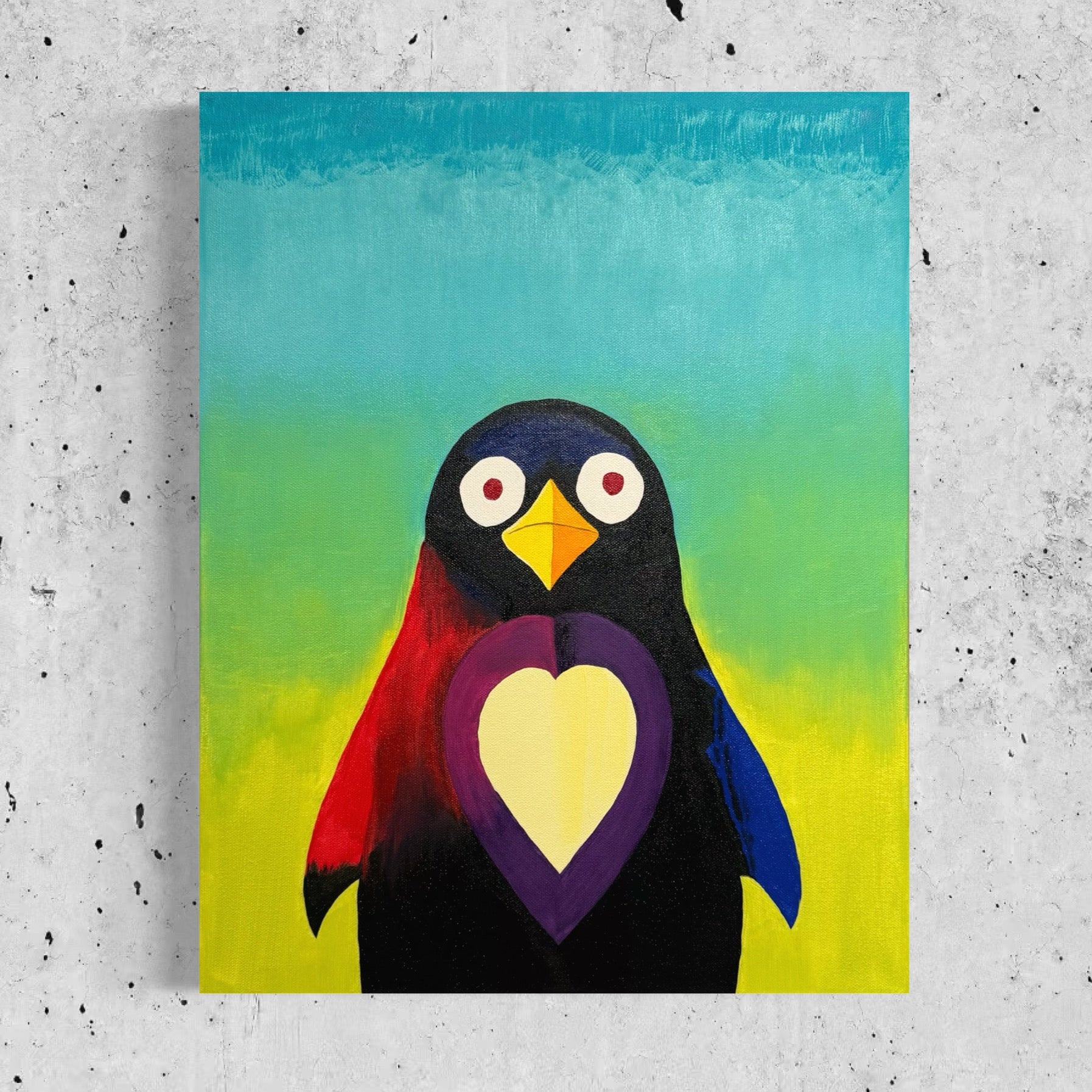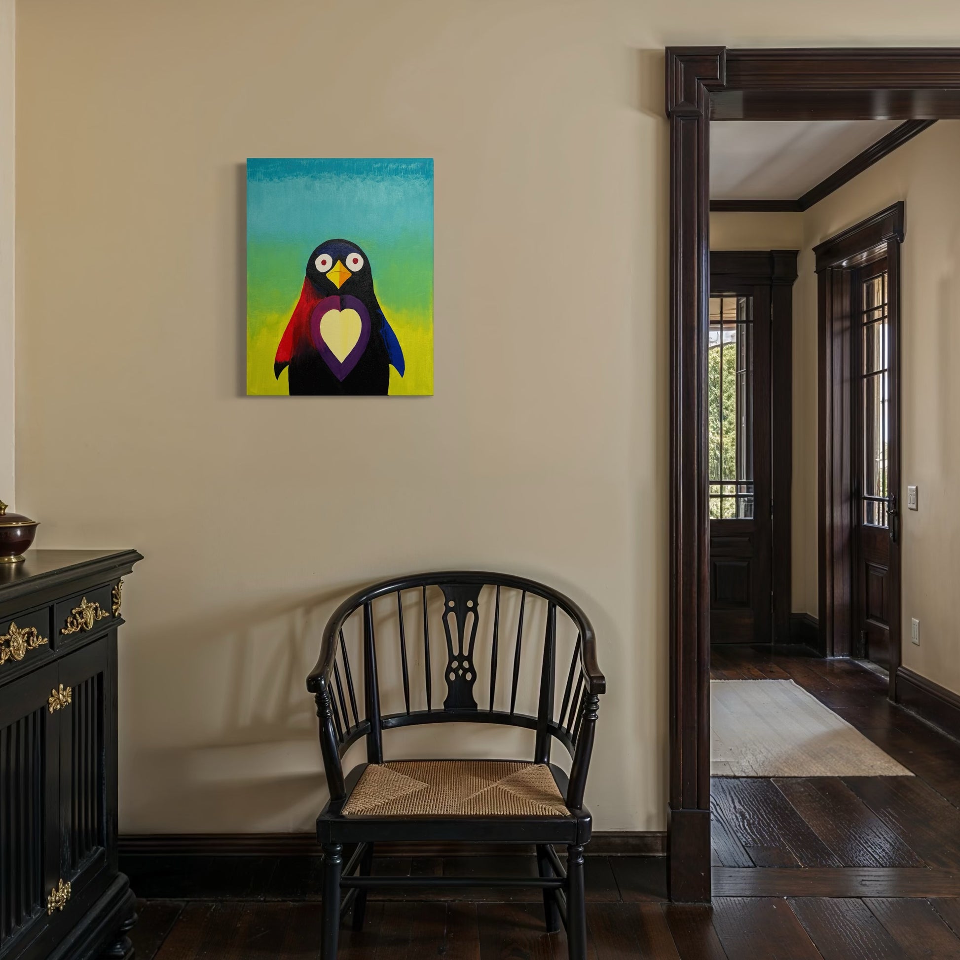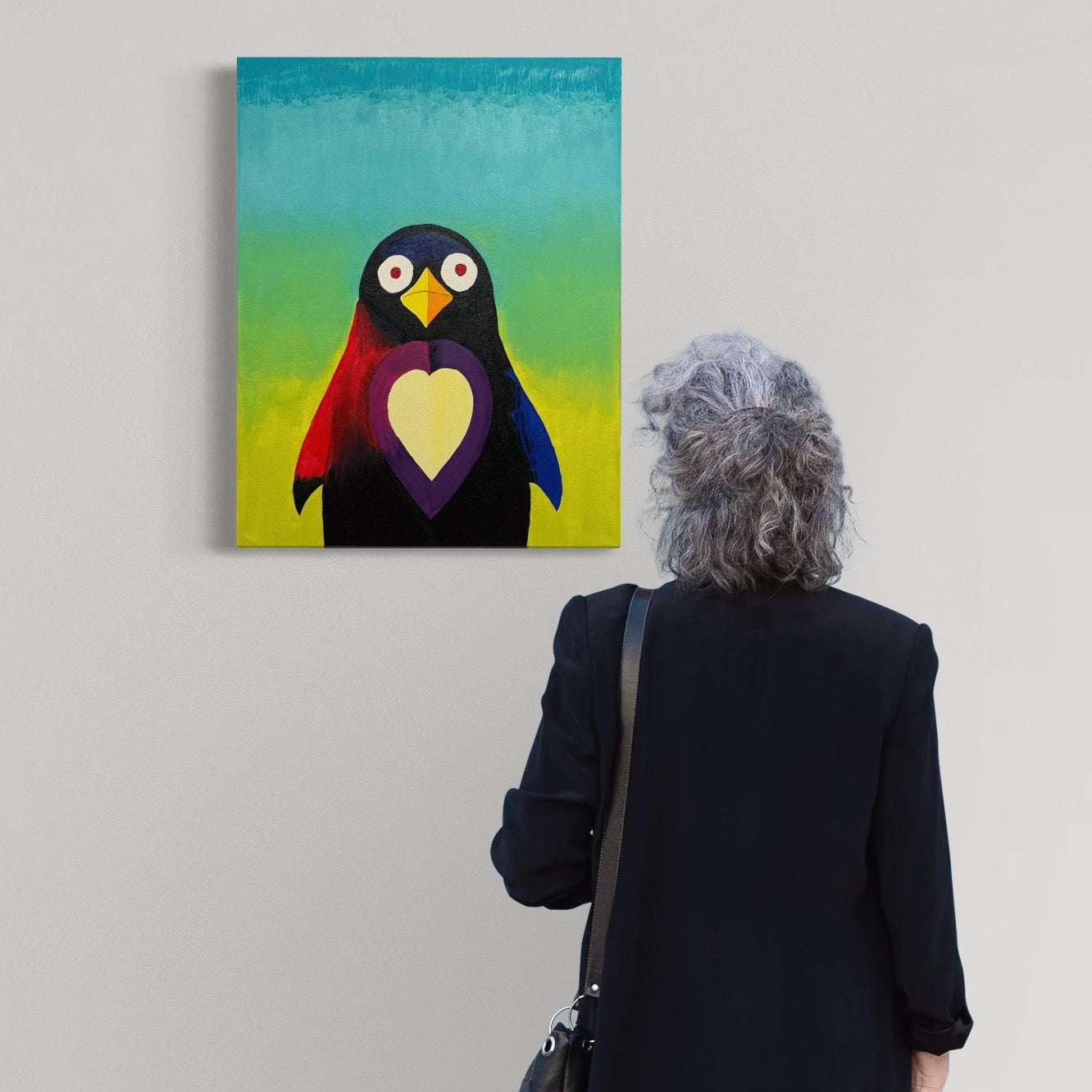 Pingveno embodies the playful spirit of abstraction within the animal form. Bold colors and geometric clarity transform the penguin into a symbol of resilience, warmth, and quiet strength. The central heart motif invites reflection on themes of love and connection, while the vibrant palette radiates optimism and energy.
